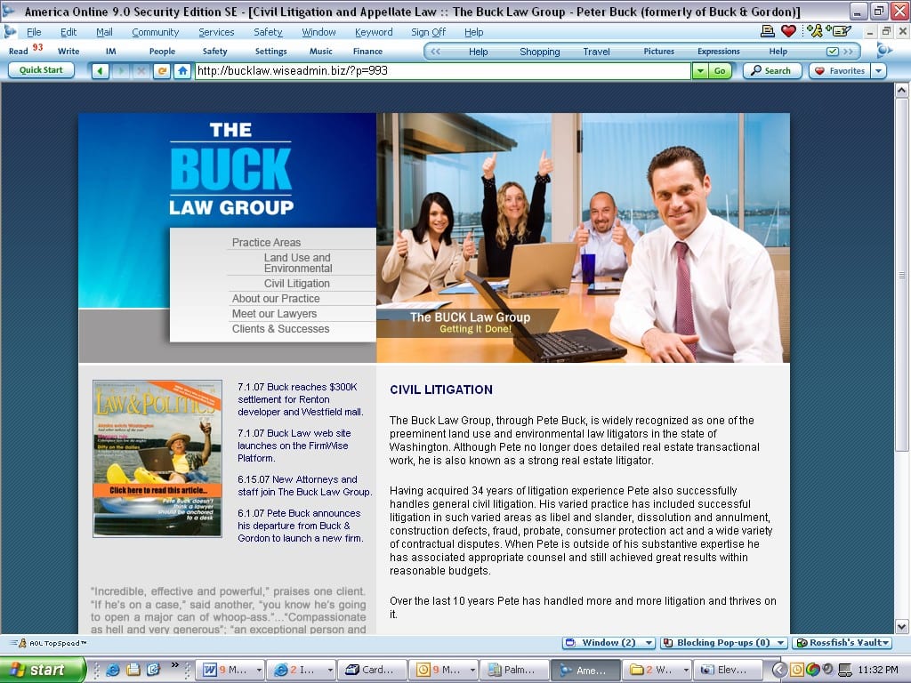 Led by one of the Northwest’s top trial lawyers, Peter Buck, who had decided to spin off his trial practice from the well-known firm he’d built, Buck & Gordon. Peter was a great guy, and published an article about his career, including our role in helping strategize and market his new firm. Quite a gracious comment.