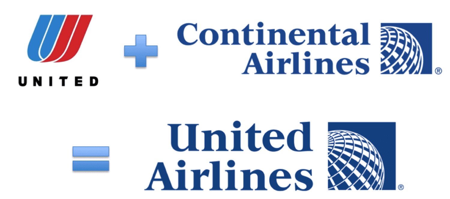 When United and Continental merged, the combined logo looked like an accommodation made by a committee. You can hear the squabbling marketers sitting around a table, each advocating for their own solution. Eventually:
